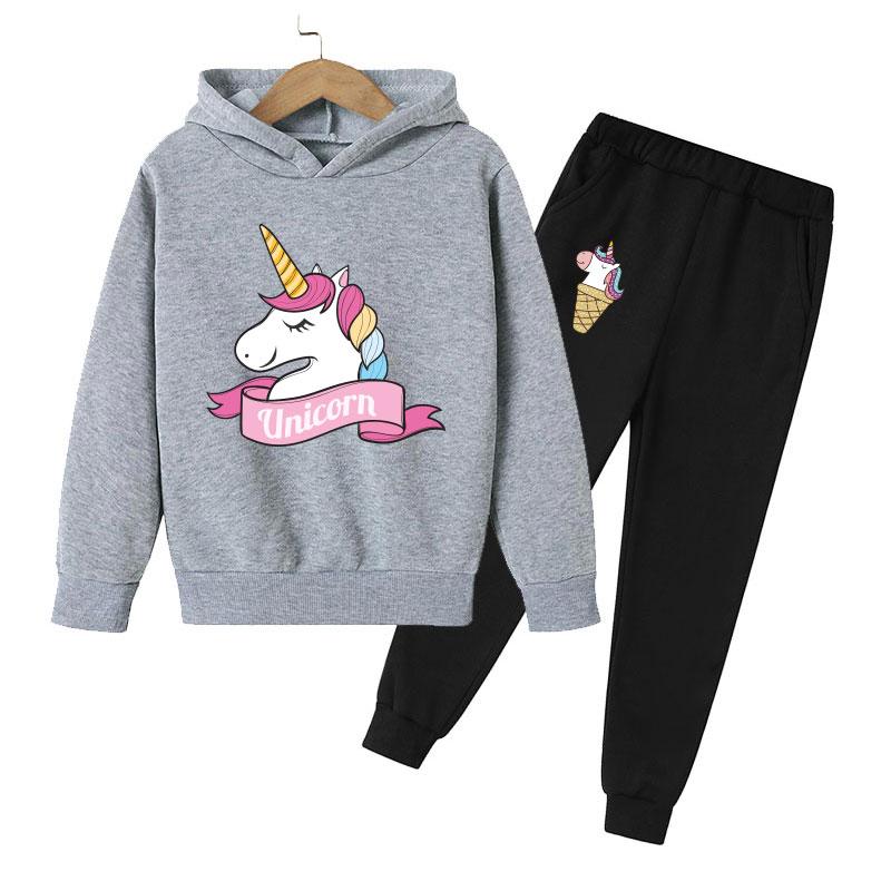 Прекрасные костюмы с капюшоном с принтом единорога 2D, новинка 2024 года в стиле Харадзюку, топы с капюшоном + свободные повседневные брюки, модные трендовые комплекты с длинным рукавом 160
