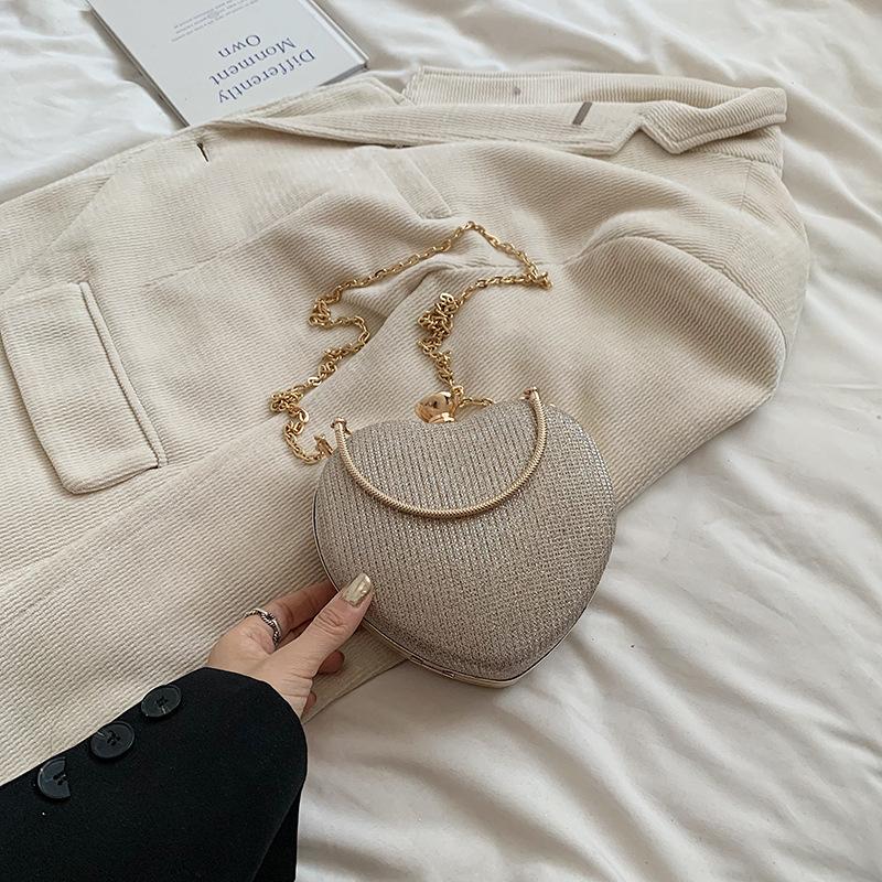 Премиальная мини-сумка женская осень 2025 года, новая модная сумка-мессенджер с цепочкой, популярная портативная сумка в форме сердца персика золотой
