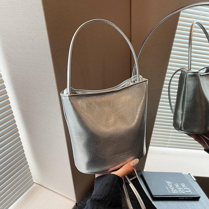Премиальная серебряная маленькая сумка в иностранном стиле для женщин 2024 года, новая летняя универсальная сумка-мессенджер, изысканная портативная сумка-ведро серебряный