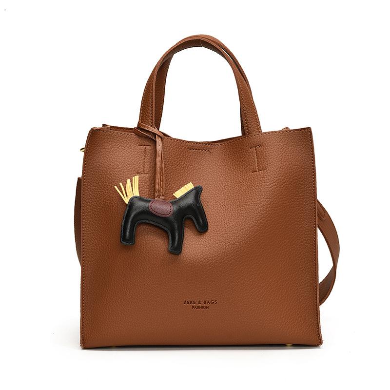 Премиальная сумка-ведро с узором личи, женская осенне-зимняя, простая и универсальная сумка-мессенджер через плечо для поездок на работу 30*13*28 темно-коричневого