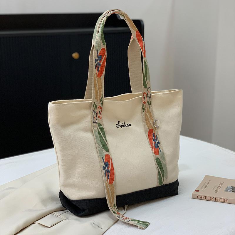 Премиальная сумка-тоут для поездок на работу, женская сумка через плечо 2024 года, новая универсальная сумка из холста большой вместимости, классная сумка белый