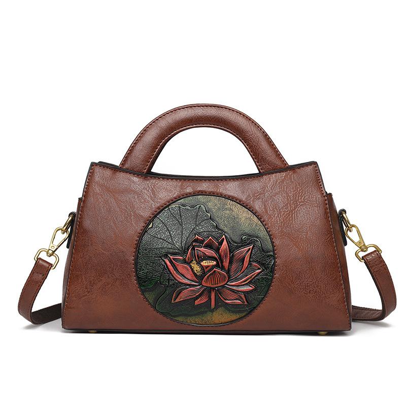Премиальная текстура большой емкости винтажная китайская резная сумка - тисненая этническая сумка через плечо для женщин