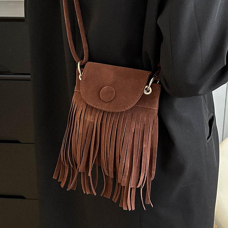 Премиальная текстура двухслойной бахромы наплечная сумка маленькая квадратная сумка для мобильного телефона ретро порт ранняя осень кожаная бархатная матовая сумка-мессенджер