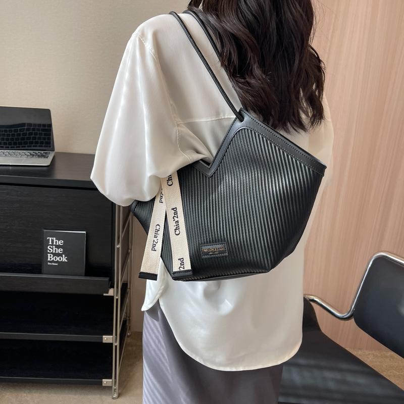 Премиальная текстурированная сумка 2025 новая весенне-летняя сумка через плечо женская вместительная сумка для работы модная универсальная сумка-тоут чёрный