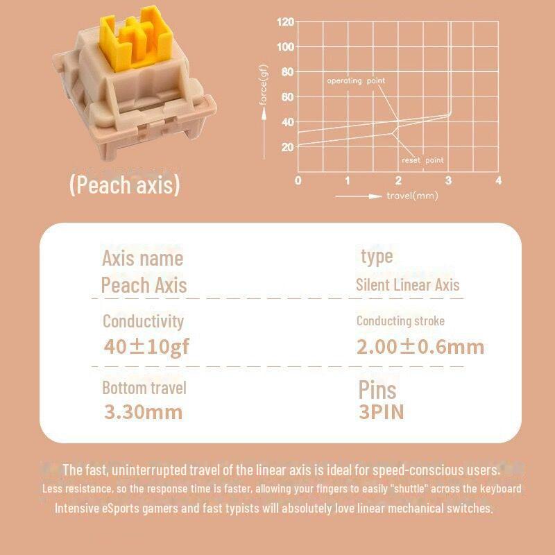 Премиальный бесшумный линейный кнопочный переключатель - кремово-желтый, персиковый, с возможностью горячей замены Tripod axis персиковый