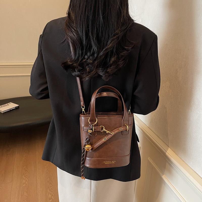 Премиальный сенс ретро маленькая сумка женская 2025 новая осень и зима универсальная сумка-мессенджер модная супер огненная портативная сумка-ведро 22*10*20 коричневый