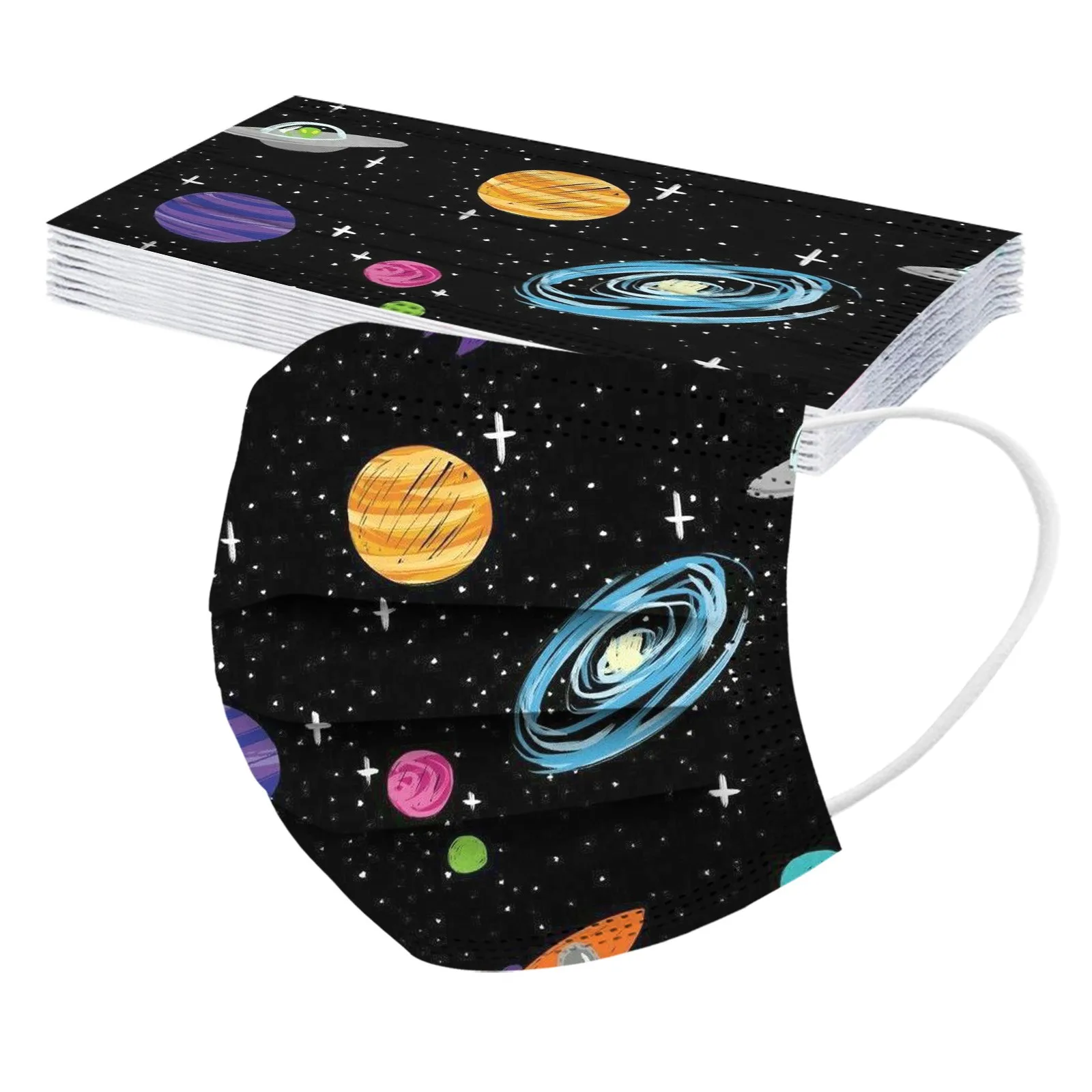 50pcs Children's Star Printing Disposable Mask 3 Layers Non Woven Colorful Space Galaxy Print Face Mask Tie-dye Gradient Mask