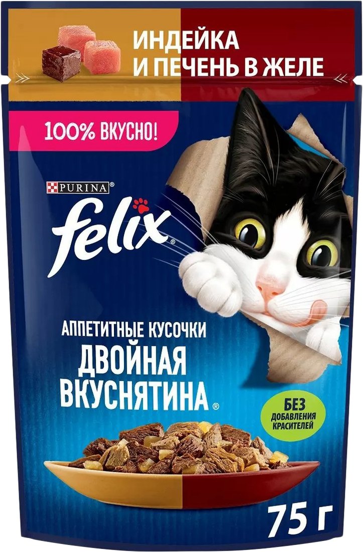 Пресервы Felix Аппетитные кусочки Двойная вкуснятина с индейкой и печенью в желе 75 г