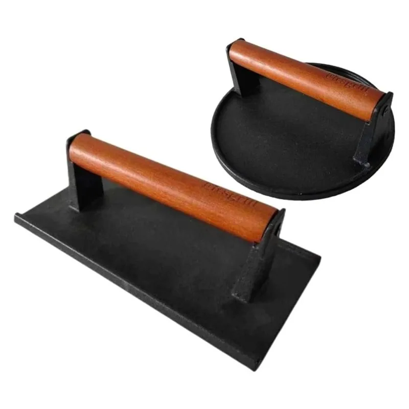 Пресс для бургеров Firsgrill 7,08 дюйма Круглый и 8,3 дюйма x дюйма прямоугольный сверхпрочный чугунный стейк для мяса с деревянной ручкой