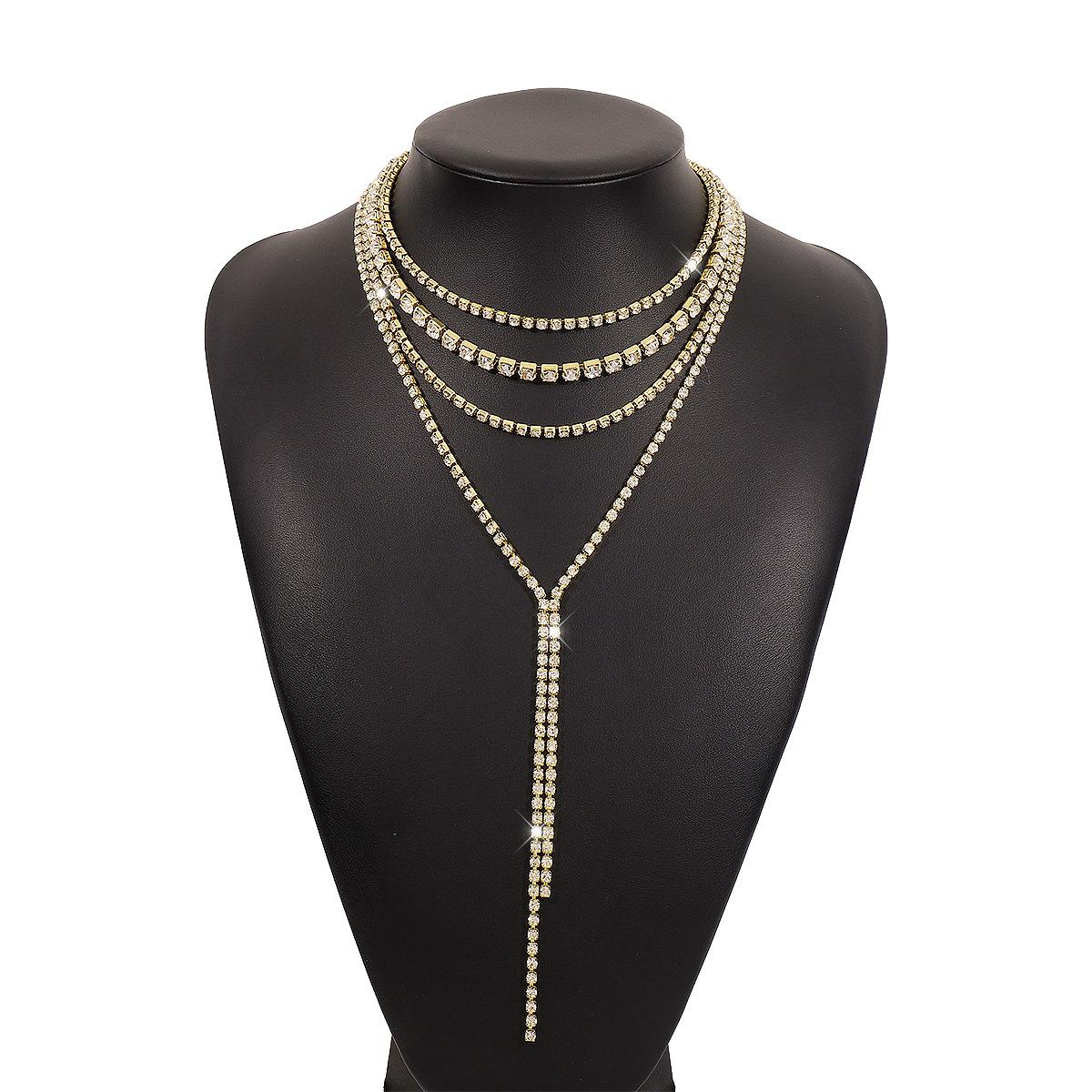 Преувеличенное нишевое модное ожерелье со стразами, многослойное, легкое, роскошное ожерелье с кисточками, аксессуары для спины для ужина и танцев