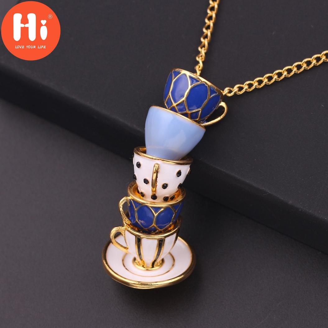 Привет женская мода ручная роспись эмаль чашка кулон ожерелье длинная цепочка ювелирные изделия