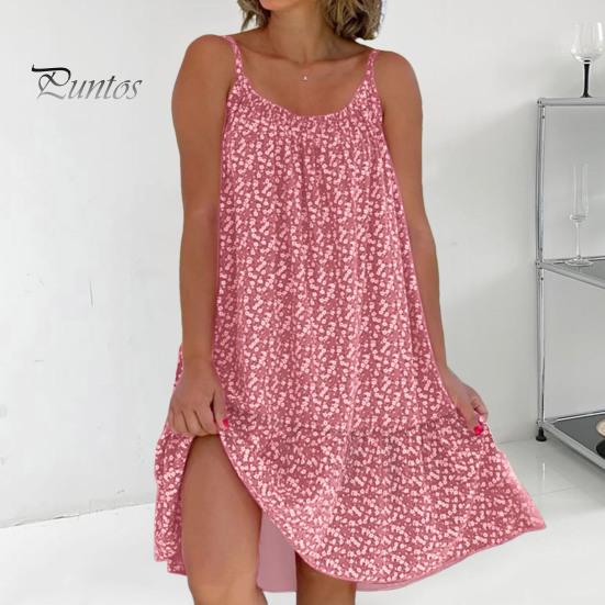 Привлекательное свободное тонкое мини-платье, летнее пляжное платье с подтяжками и цветочным принтом, повседневная одежда L темно-розовый