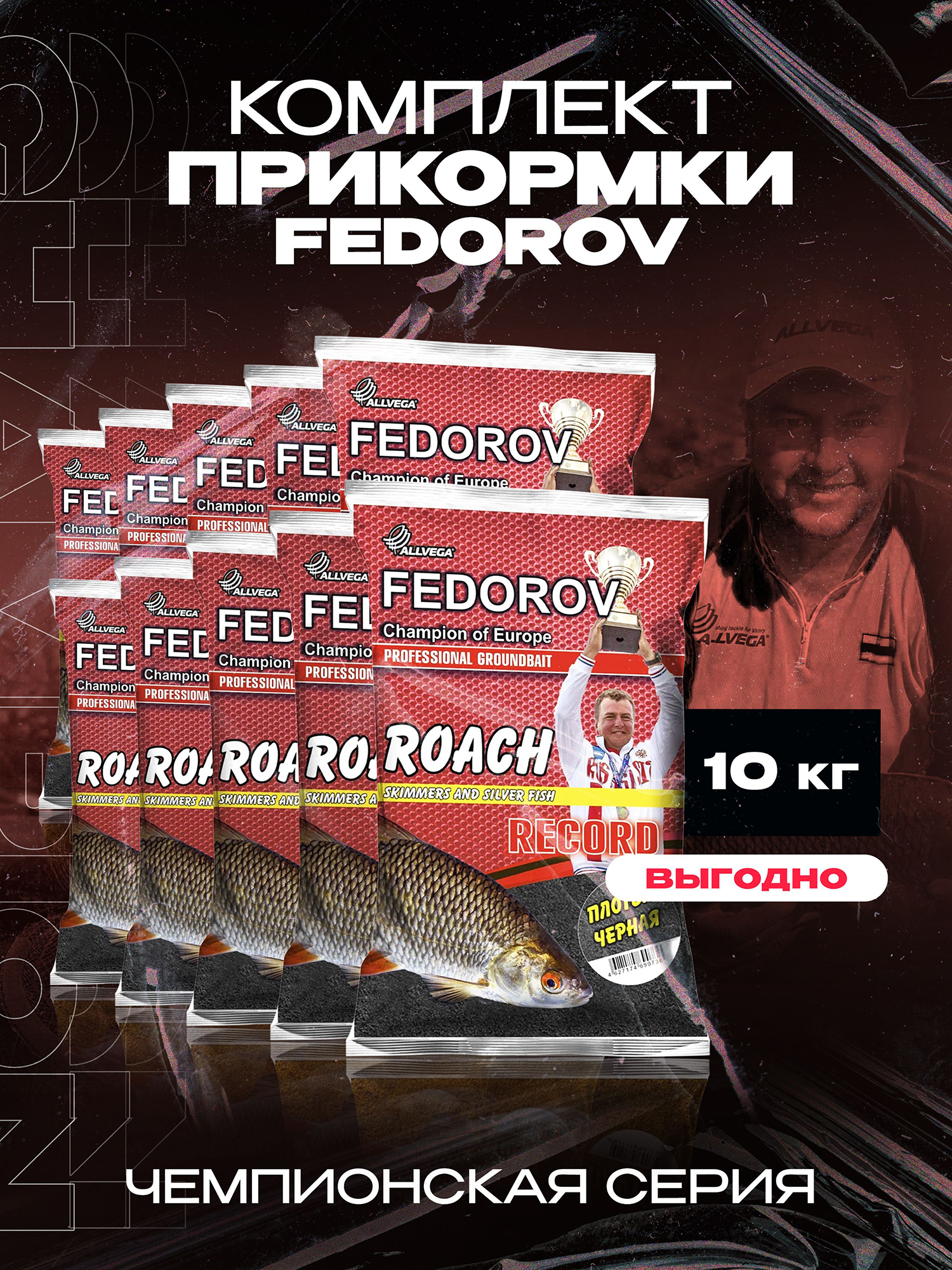 Прикормка для рыбалки ALLVEGA Fedorov Record плотва черная 10 пакетов по 1 кг, Черный