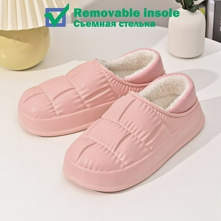 QWZNDZGR Men Winter Warm Slippers Waterproof Couples Non-Slip Plush Slides Indoor Outdoor Furry Shoes Household Eva Thick Home Slides