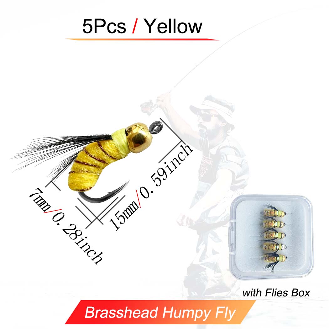 Приманка для ловли рыбы нахлыстом 5/10 шт./кор. черные крючки, яркая кожа, материал, нимфа, искусственная приманка для ловли окуня/форели/лосося Yellow-5Pcs/Box
