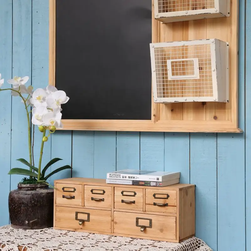Примитивные винтажные маленькие ящики для шкафа из массива дерева