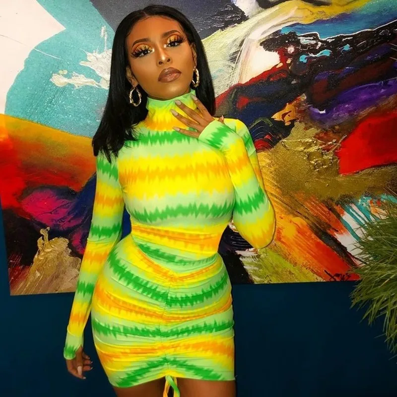 Принт с высоким, плотно облегающим шею воротником облегающее осеннее платье женское платье с длинным рукавом, сексуальное мини-платье с мин...