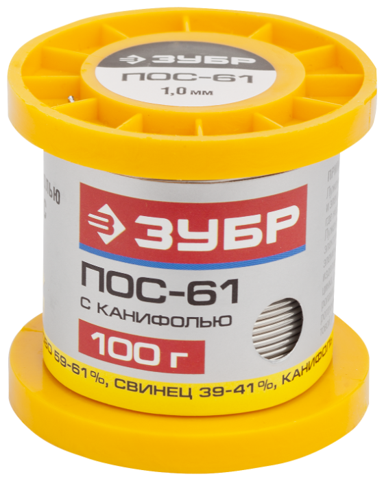 Припой ЗУБР 55450-100-10C, 1мм, 100г, 1шт, 55450-100-10C