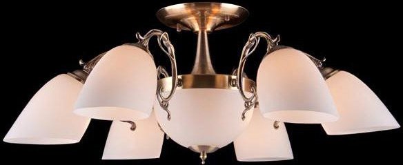 припотолочная люстра, плафон белый (стекло), каркас бронзовый