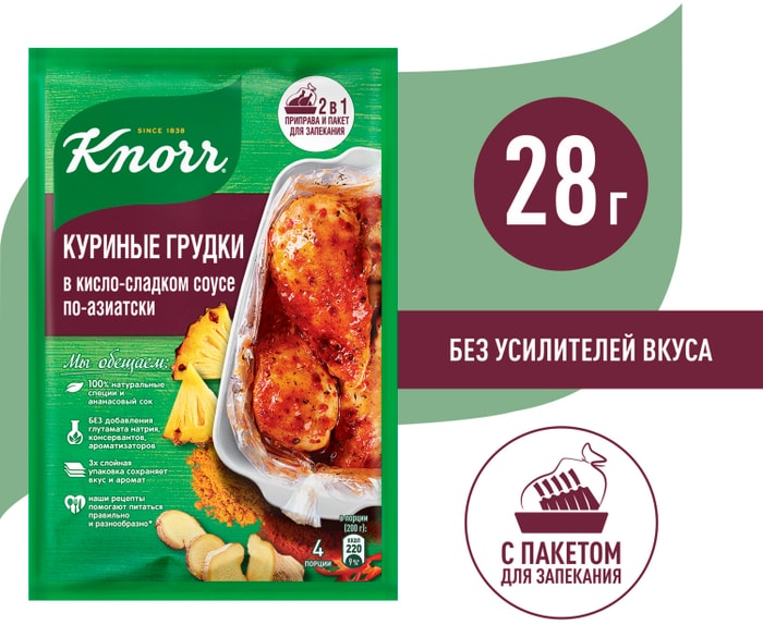 Приправа с пакетом для запекания Knorr На второе Куриные грудки в кисло-сладком соусе по-азиатски, 28 г