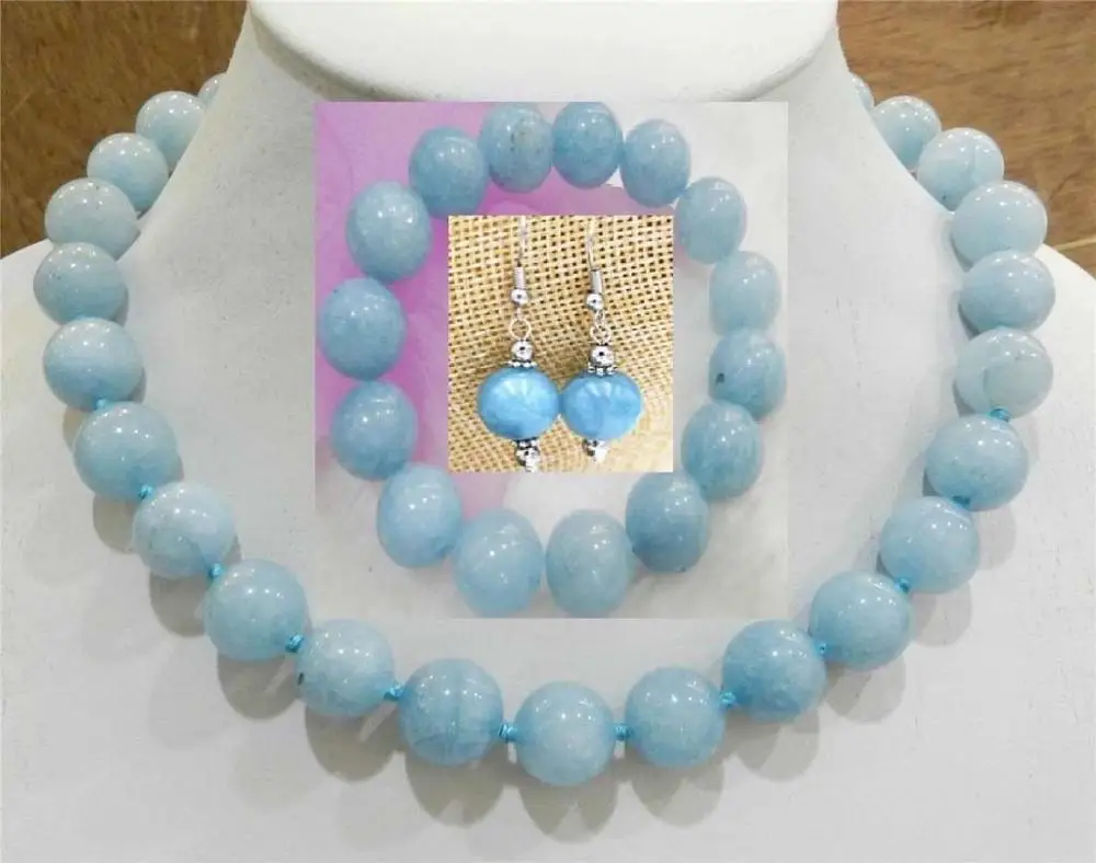 Природные красивые 10 мм аквамариновые драгоценные камни бисер ожерелье 18 браслет серьги комплект ювелирных изделий