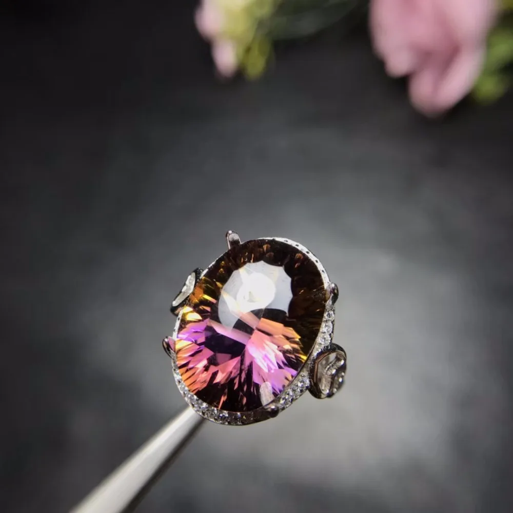Природный Аметрин кольцо, красивое в двух цветах, Женское кольцо из серебра 925 пробы.