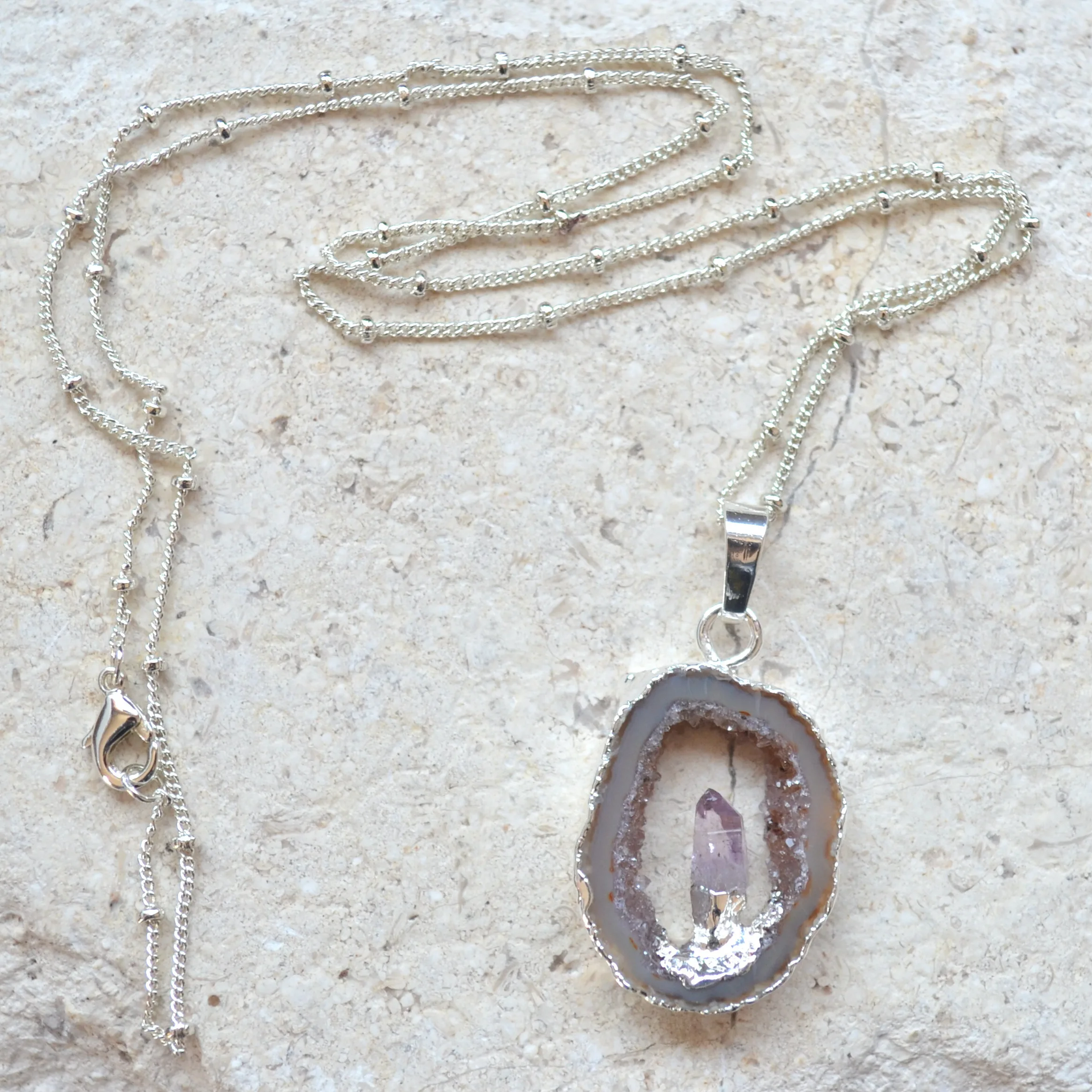 Природный геод Друза срез с фотоэлементами Модные кварцевые ювелирные изделия