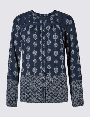 Приталенная блузка Buttonsafe™ с комбинированным принтом и вышивкой, Морской микс