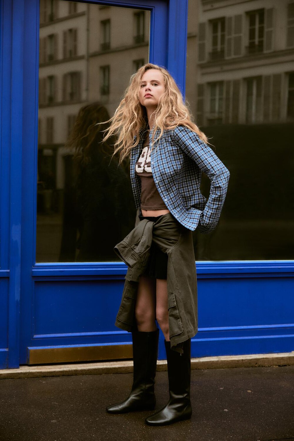 Приталенная рубашка в клетку ZARA, цвет blues