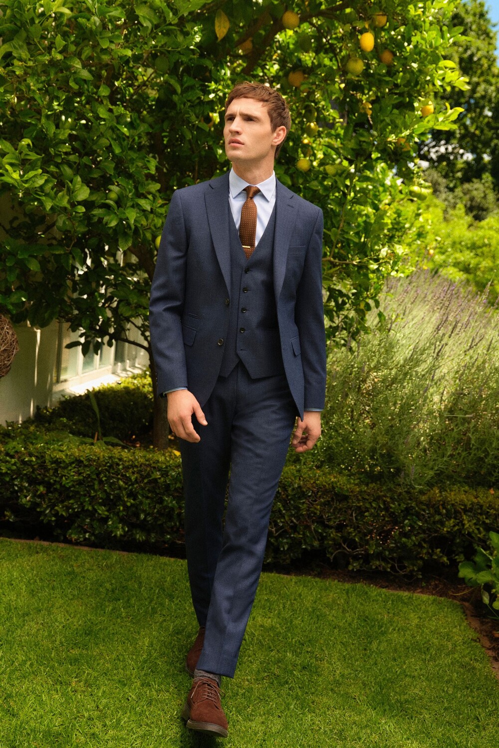 Приталенный костюм из фактурной шерсти: куртка Next, синий