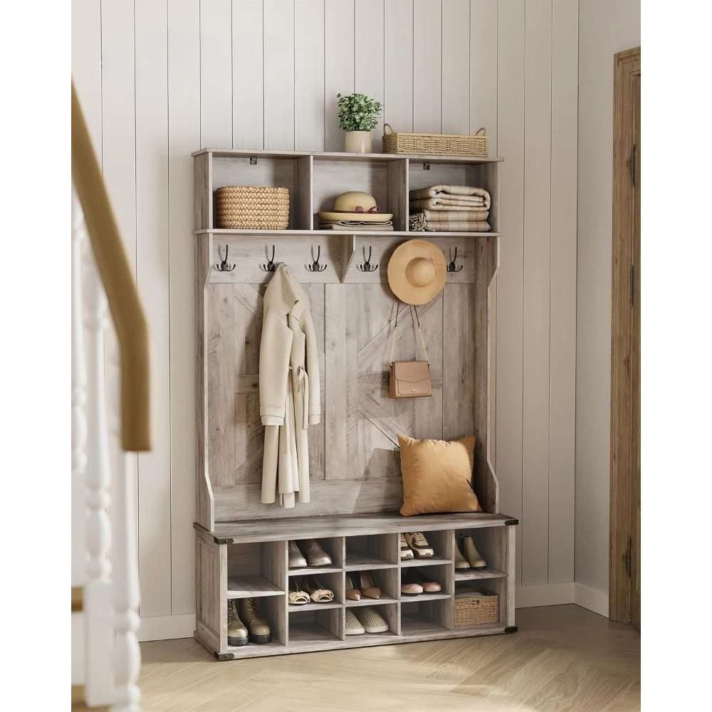 Прихожей с скамейкой и хранилищем обуви, вешалка для пальто с скамейкой для обуви, мебель для прихожей, деревенский деревянный стиль