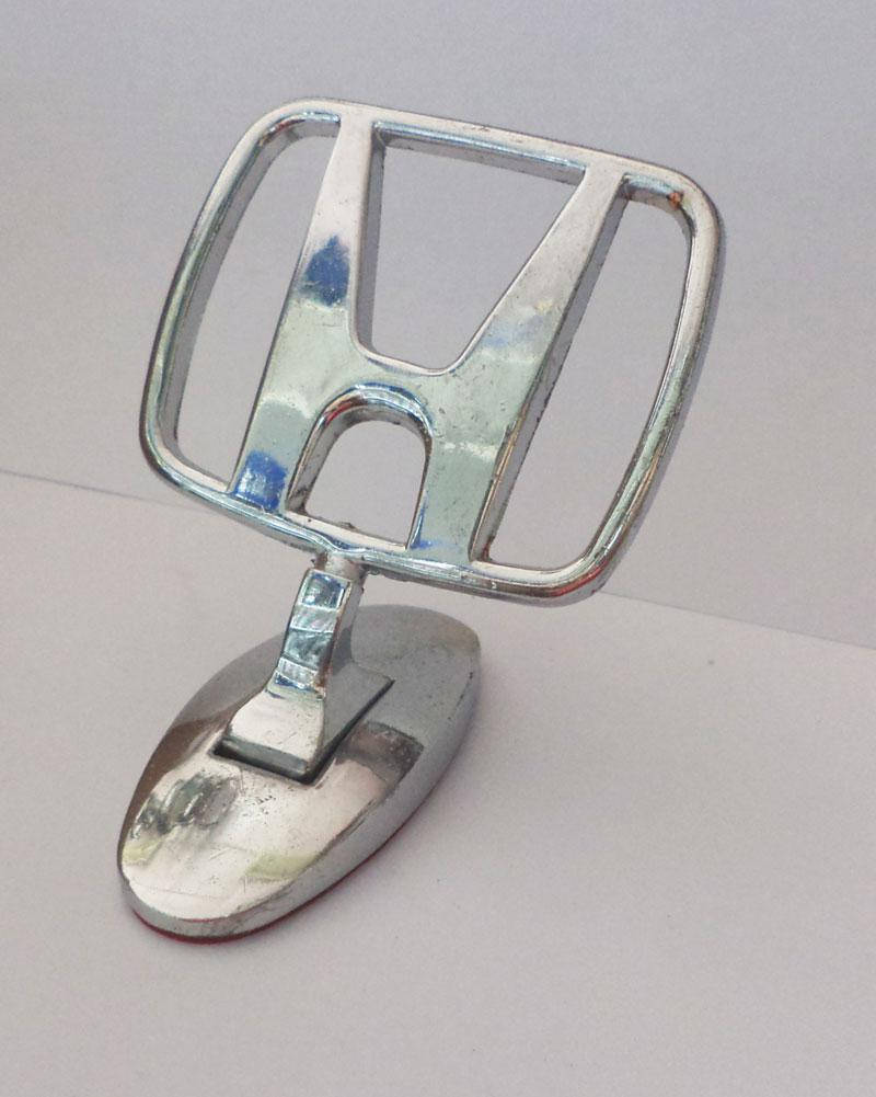 Декоративная металлическая эмблема Honda на ножке. Устанавливается на капот при помощи двустороннего скотча 3M.