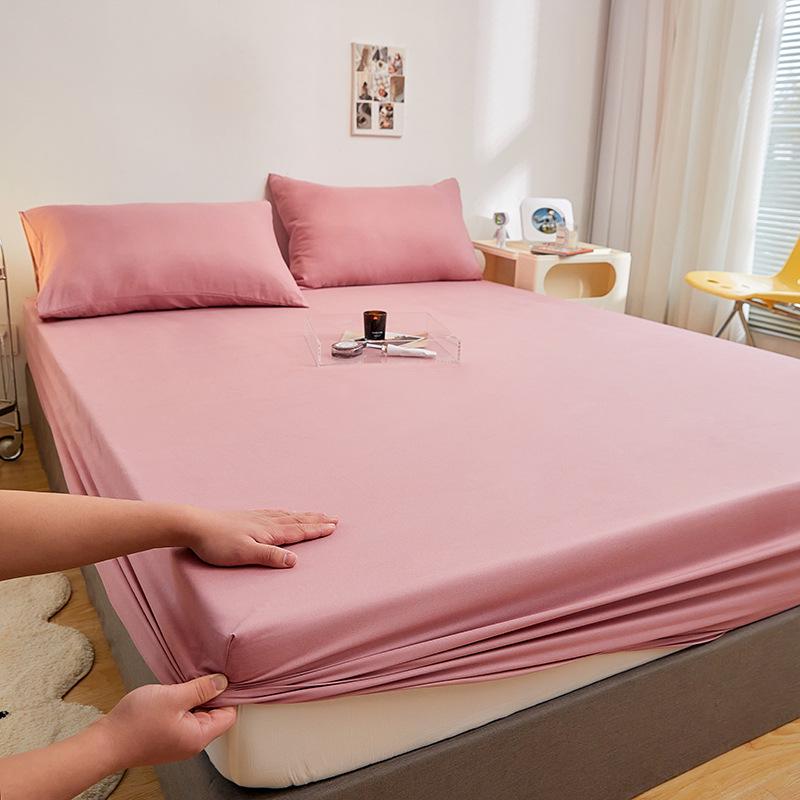 Приятная к коже матовая однотонная простыня на резинке для односпальной кровати - Грязеотталкивающий наматрасник Pair of Pillowcases