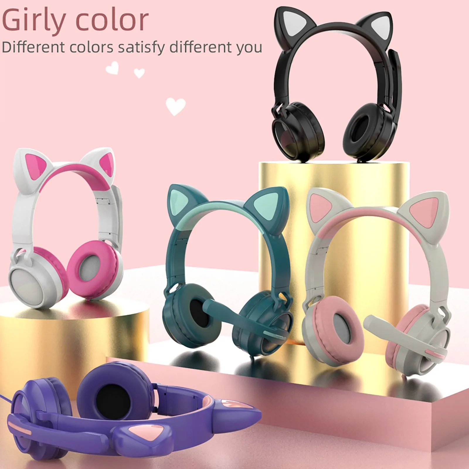 Проводная гарнитура для геймеров, розовая гарнитура с кошачьими ушками, милая гарнитура для PS4, телефона, ПК с микрофоном, игровой телефон 3,5 ...