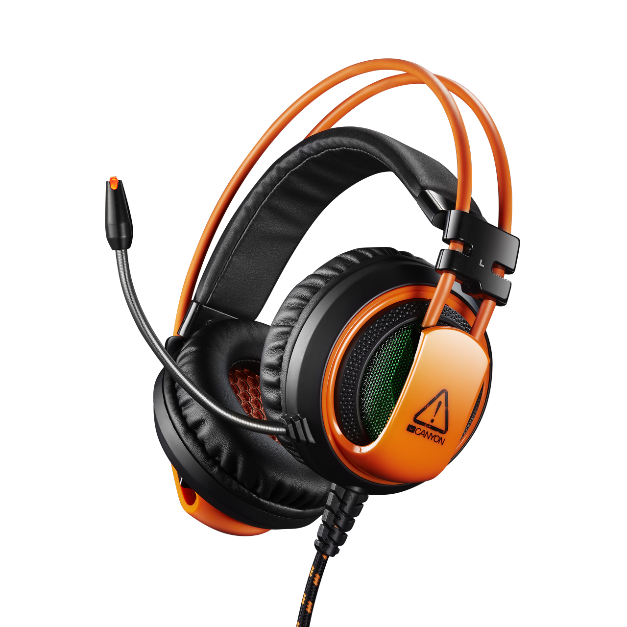 Проводная гарнитура Canyon Corax, 2xJack 3.5mm/USB, черный/оранжевый (CND-SGHS5A), Corax
