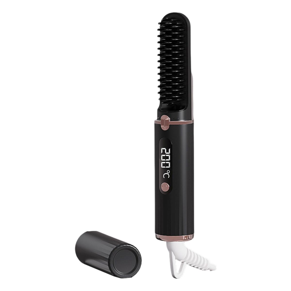 Проводной выпрямитель для волос с 4 регулируемыми температурами, ЖК-дисплей, портативная горячая щетка с отрицательными ионами, электрическая расческа для укладки вьющихся волос, распутывающая волосы чёрный