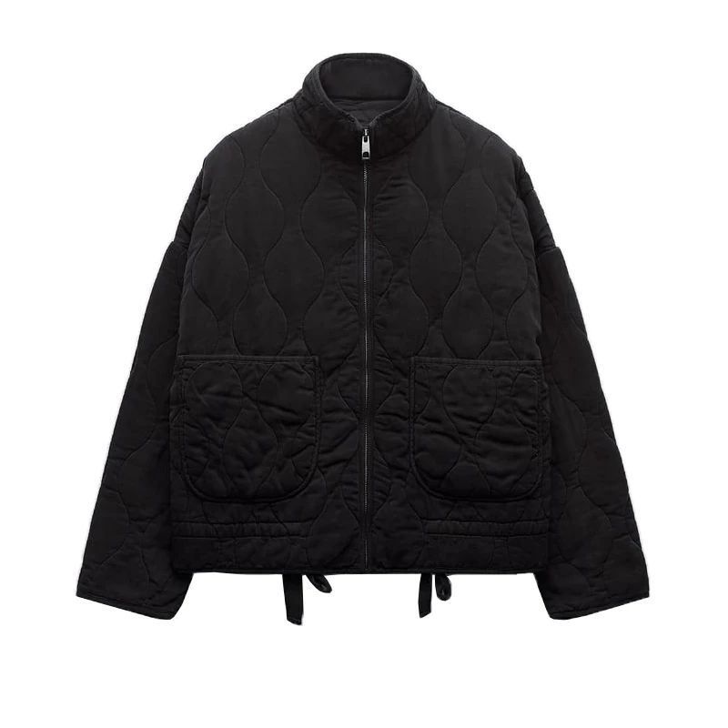 Повседневная свободная хлопковая куртка с воротником-стойкой и ромбовидным узором, женская верхняя одежда, осень-зима, Новое поступление 4088242