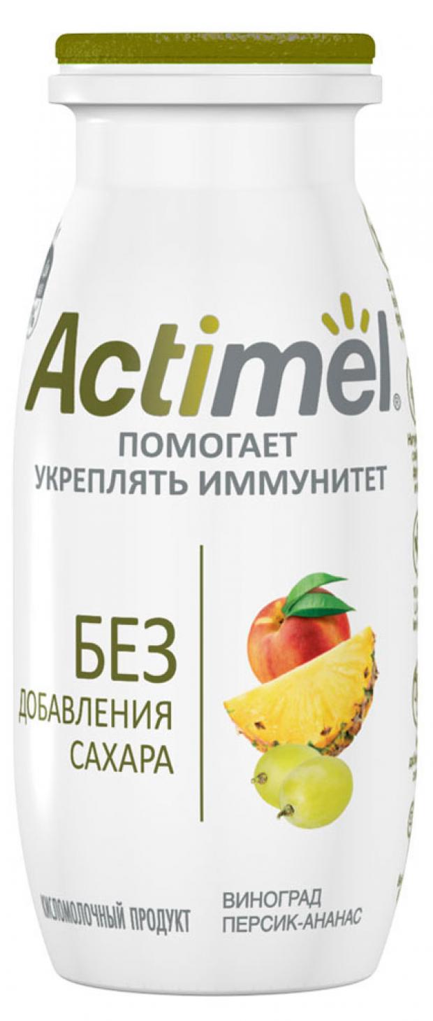 Продукт кисломолочный Actimel с виноградом персиком и ананасом 2,2%, 100 г