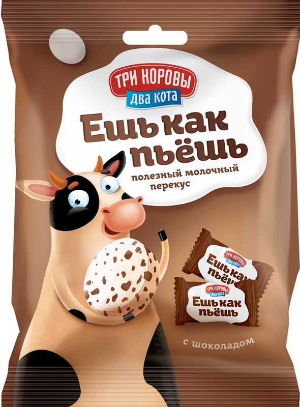 Продукт молочный составной Три коровы Два кота Ешь как пьешь с шоколадом 4%, без змж, 50 г