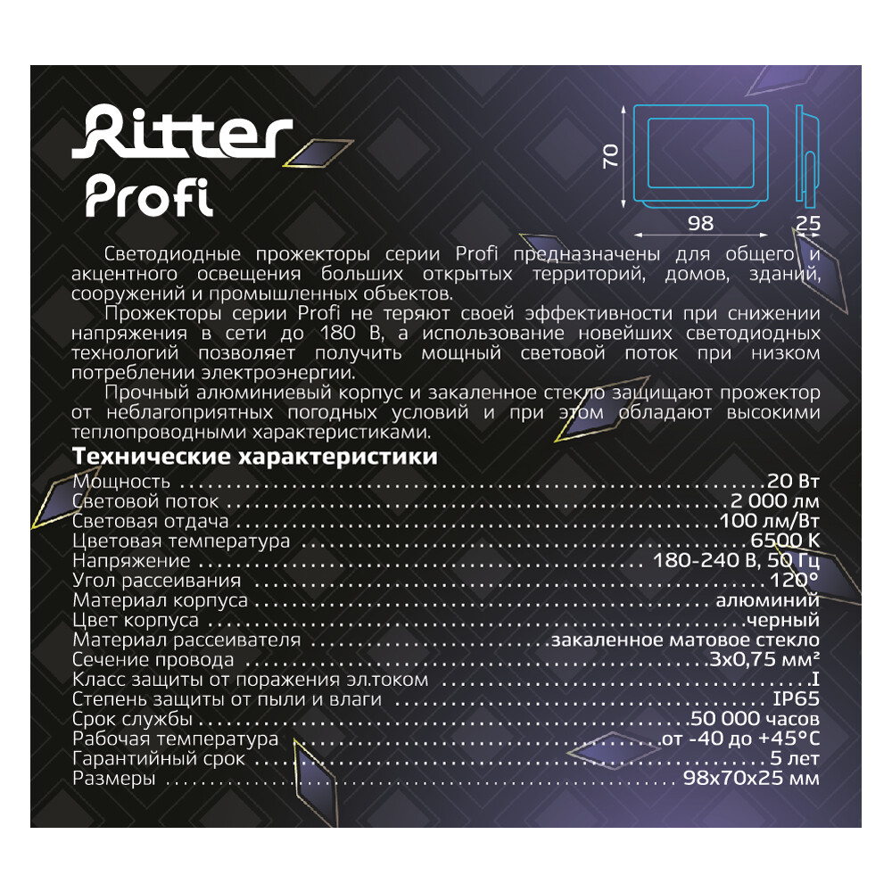 Прожектор светодиодный Ritter Profi 6500К 20 Вт IP65 черный