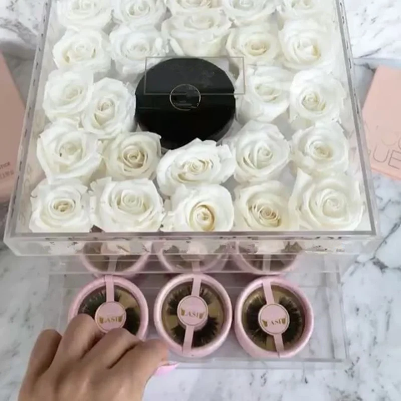 Прозрачная акриловая коробка для хранения цветов с логотипом на заказ, 25 роз, с ящиком