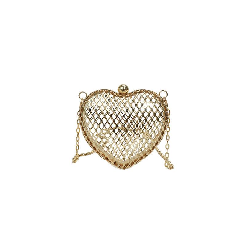 Прозрачная желейная сумка-сердце 2025 новая европейская и американская модная полая личность нишевая универсальная женская сумка на цепочке золотой