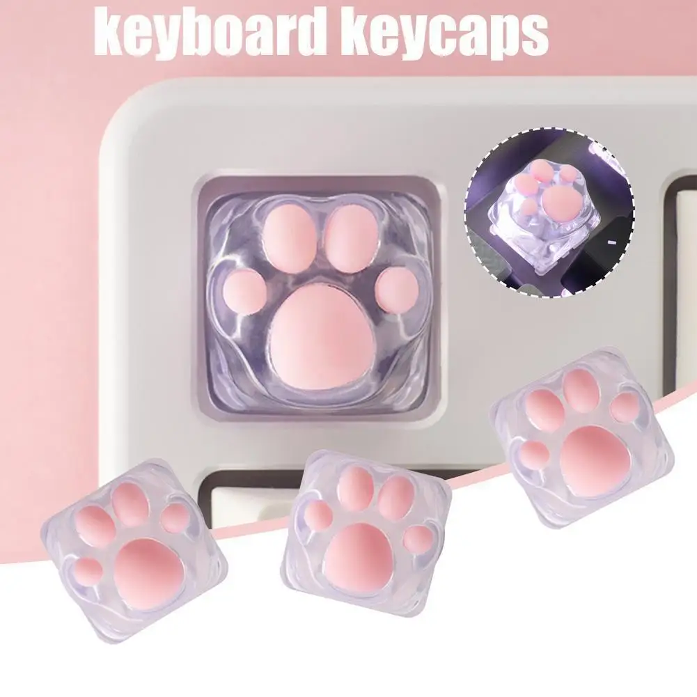 Прозрачная милая розовая мягкая дизайнерская клавиатура с кошачьими лапками для CHERRY Mx Switch Механическая игровая клавиатура 3D бионическая к...