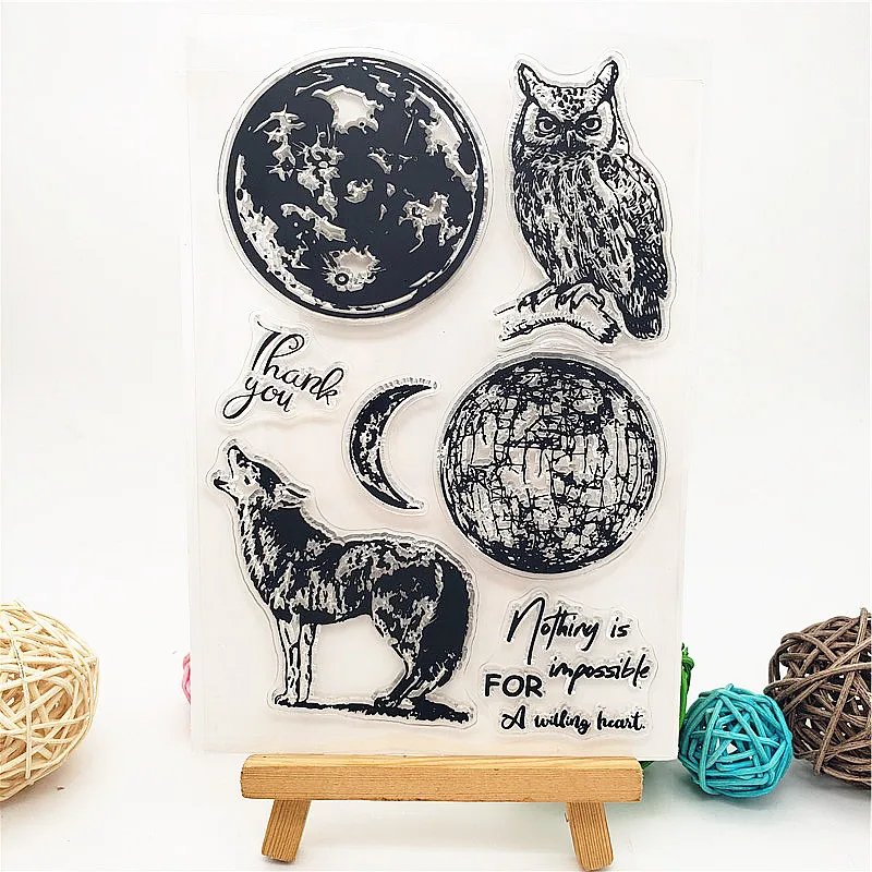 Прозрачная печать в виде совы и Луны, 11x16 см, Силиконовая печать, ТПР, роликовые штампы для Хэллоуина, скрапбукинга и открыток «сделай сам»