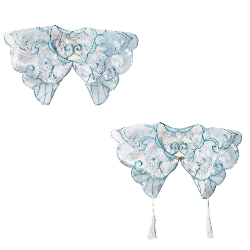Прозрачная шаль с накладным воротником в китайском стиле с вышивкой для фотографий на фестивалях для девочек