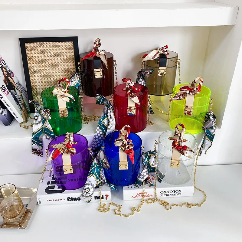 Прозрачные Акриловые сумки через плечо в виде цилиндра для женщин, женские сумки с лентой и ручками, женская сумка, Прозрачная женская сумка...