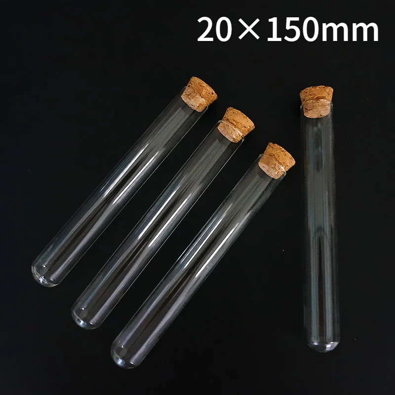 Прозрачные стеклянные круглые пробирки 12 шт./лот 20x150 мм с пробковой пробкой для школы/лабораторной посуды
