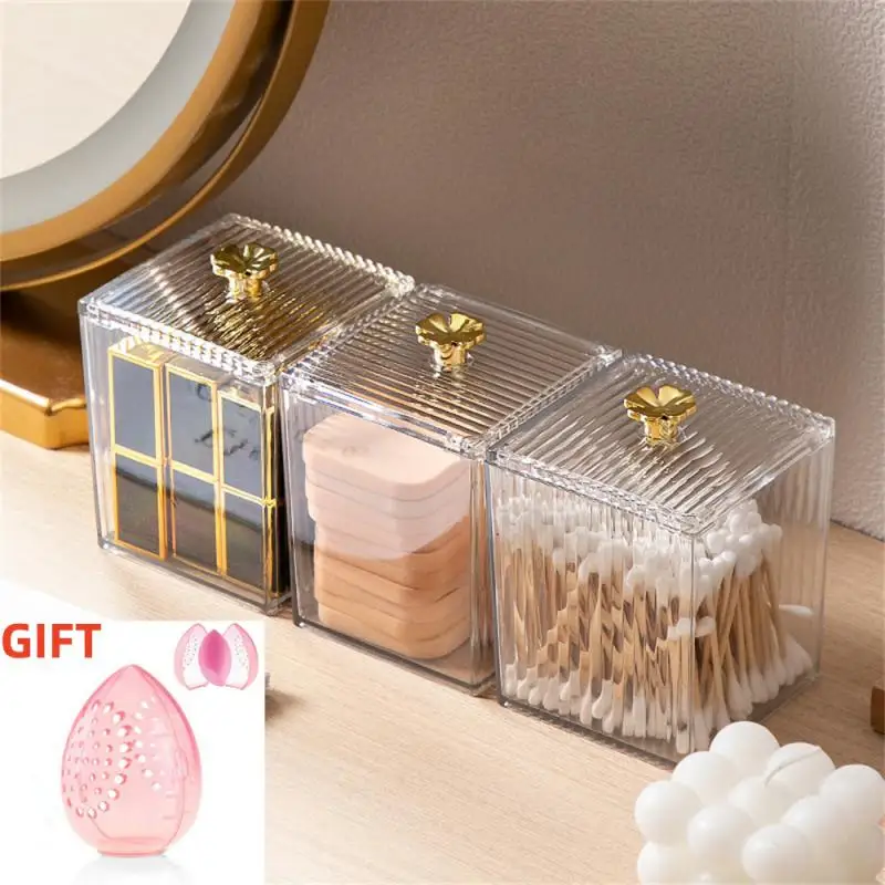Прозрачный акриловый ящик для хранения ватных палочек, настольный пыленепроницаемый органайзер для хранения косметики, губной помады