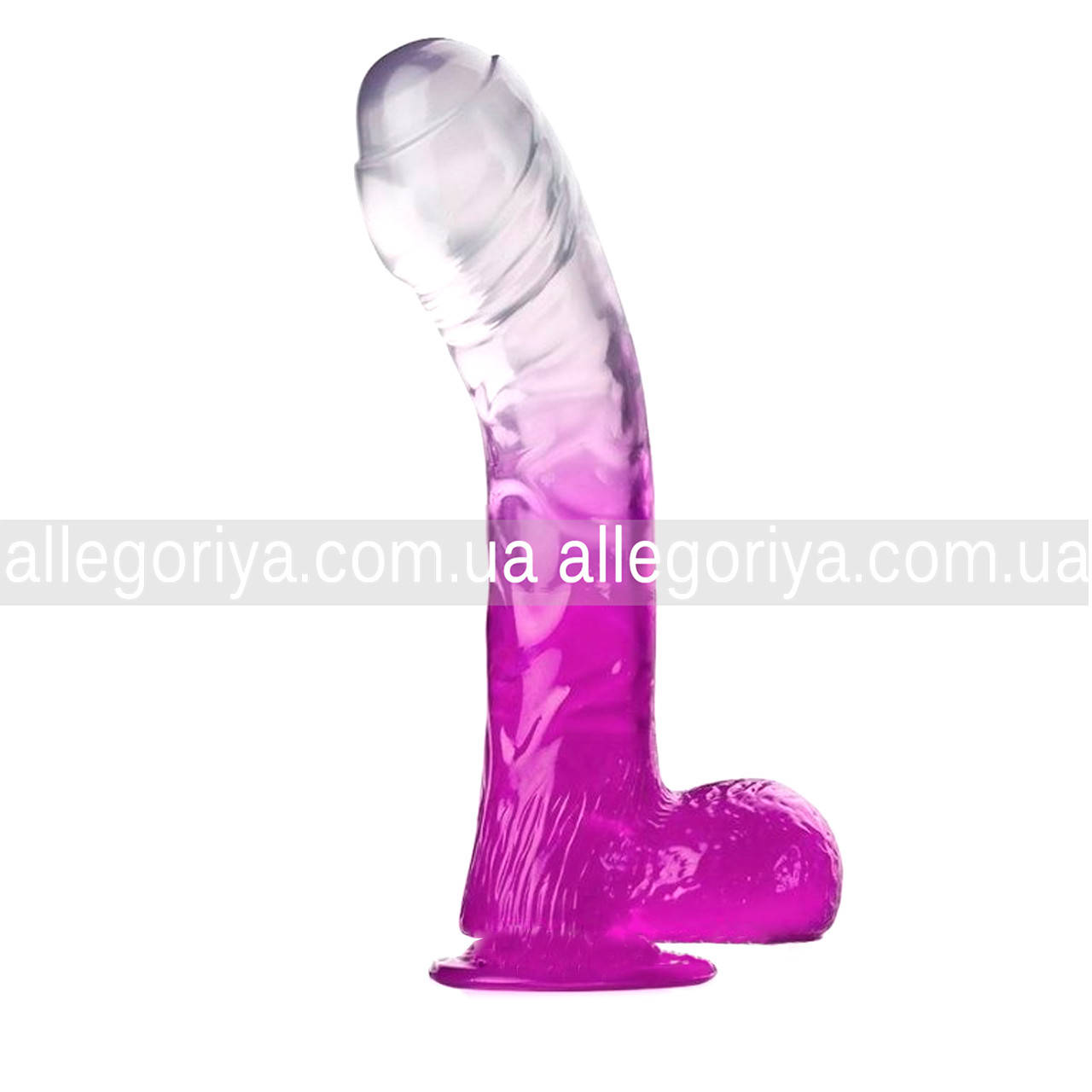 Прозрачный гибкий фалоимитатор на присоске с мошонкой Mate Love Soft