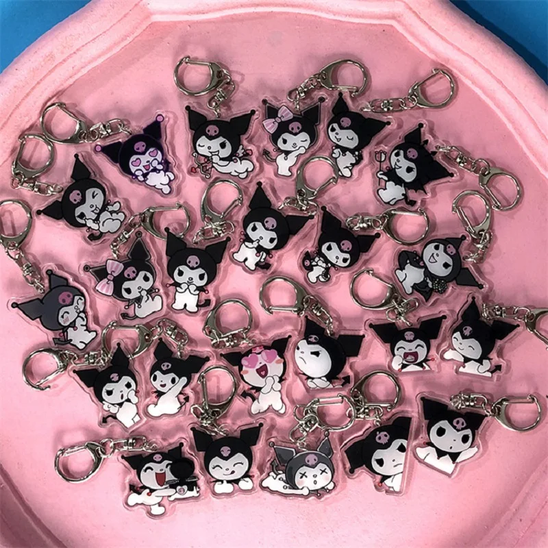Прозрачный двусторонний акриловый брелок Kuromi Kawaii, аксессуары Sanrio, аниме фигурка, мультяшный кулон, аниме Kuromi, игрушка в подарок